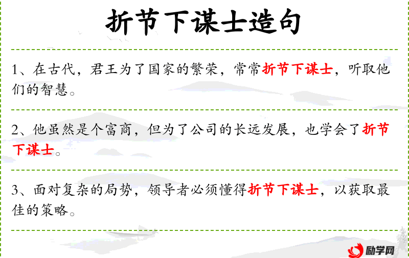 - 折节下谋士:反映了**传统文化中对谦逊和智慧的重视。