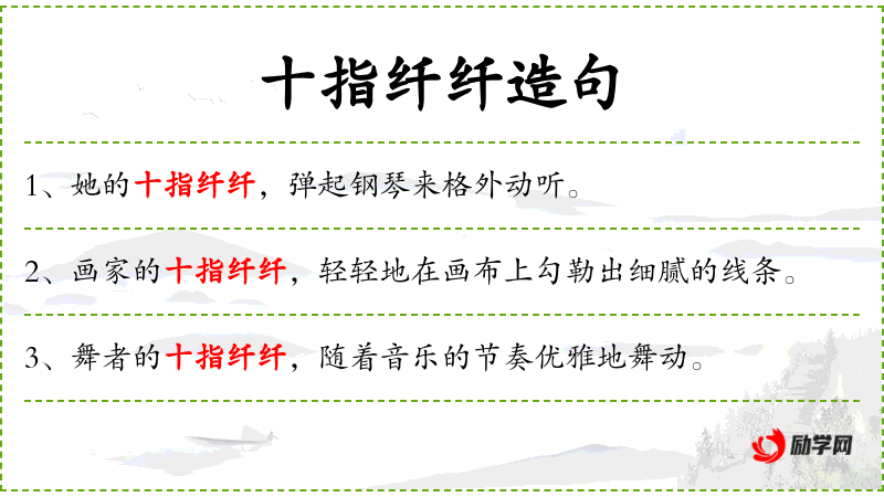 - 纤纤:形容手指细长而柔美。