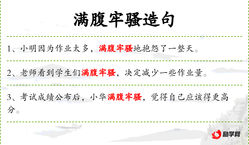 牢骚:抑郁不平之感。一肚子的牢骚。形容心情极为抑郁,很不得意。