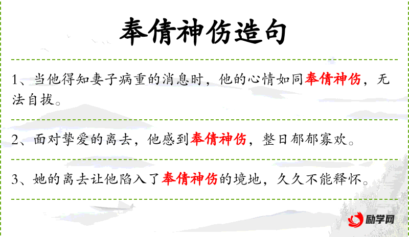 句子:“面对挚爱的离去,他感到奉倩神伤,整日郁郁寡欢。”