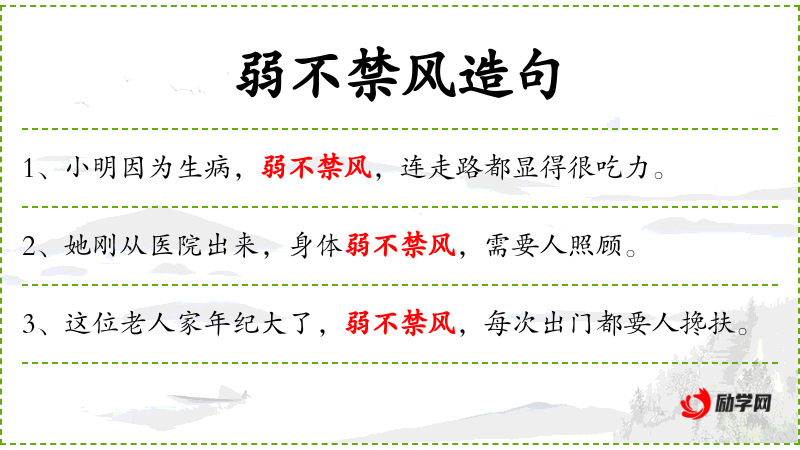 - 补语:弱不禁风