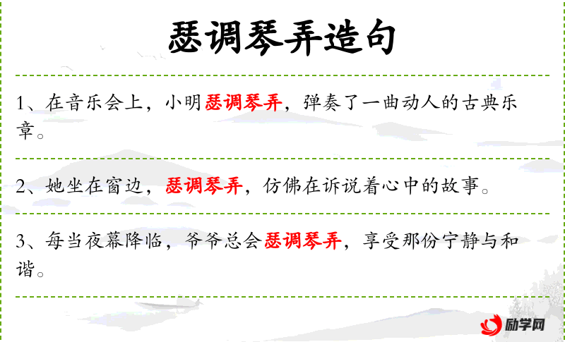 3. 【瑟调琴弄】 - 比喻夫妇感情融洽。