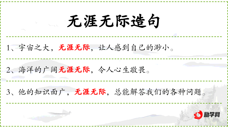 1. 【无涯无际】 涯:边际,极限;际:边缘处。形容范围极为广阔。