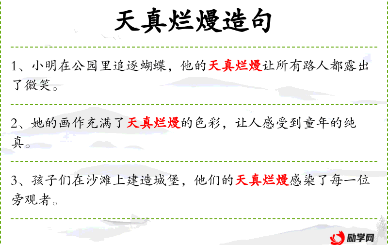 - 天真烂漫:形容人或事物纯真、无忧无虑、充满幻想。