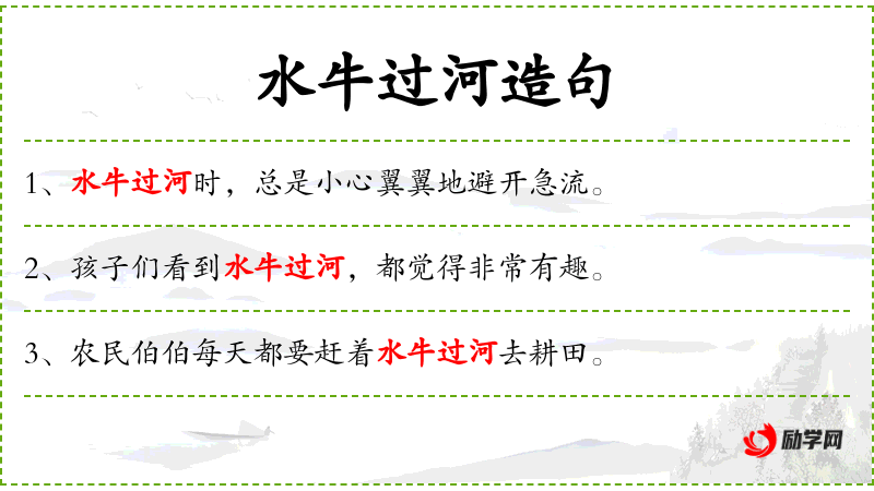 3. 【水牛过河】 - 指出露头角,出头露面。