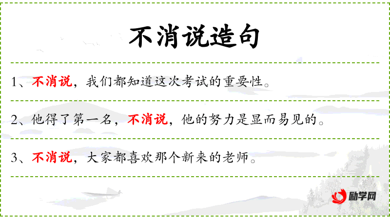 1. 【不消说】 - 犹言不必说。谓不言自明。