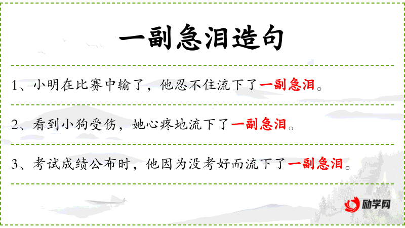 1. 【一副急泪】 指为了对付应急需要而骤然挤出来的一串眼泪。