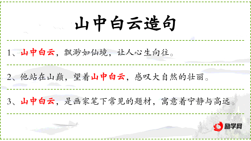 句子:“他喜欢在山中白云下读书,感受那份宁静与清新。”