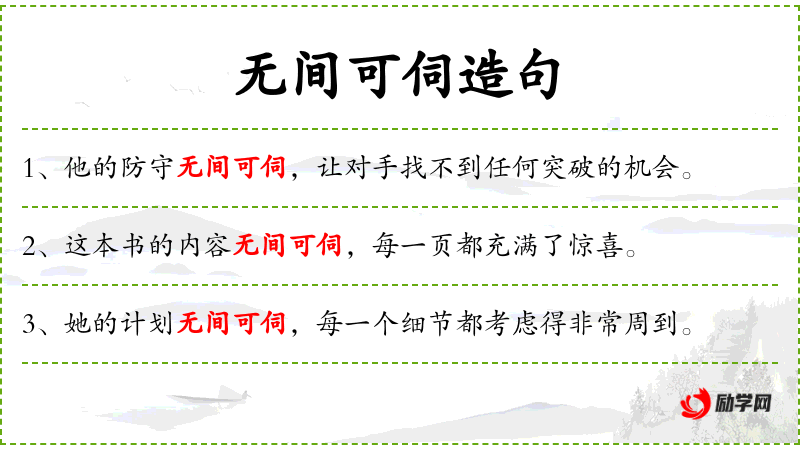 句子:“他的学*方法无间可伺,每一个知识点都掌握得非常牢固。”