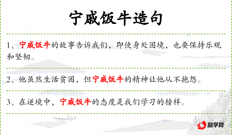 - 学生们被她用宁戚饭牛的故事所激励,面对挑战时展现出坚强。