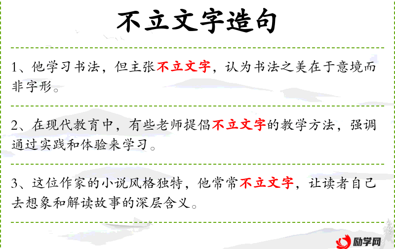 - 宾语:不立文字的教学方法、通过实践和体验来学习