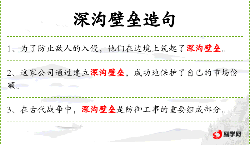 5. 【深沟壁垒】 犹深沟高垒。深的战壕和高的营垒。指坚固的防御工事。