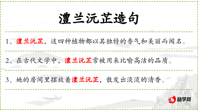 4. 【澧兰沅芷】 - 沅、澧:都是水名;兰、芷:都是香草。比喻高洁的人品或高尚的事物。