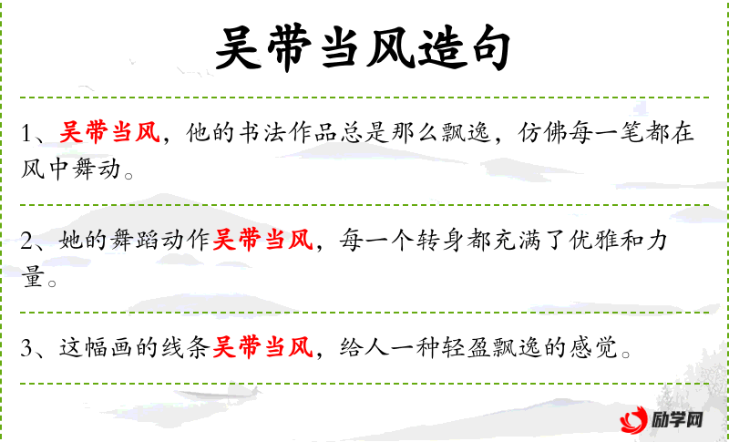 - “吴带当风”:成语,形容线条流畅,如同吴带在风中飘扬。
