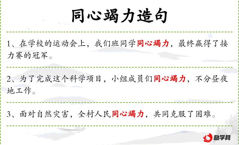 - 不同句式:全村人民在面对自然灾害时,同心协力,成功克服了困难。