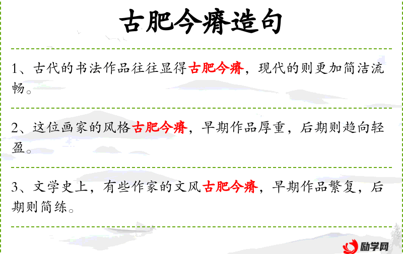 - 古肥今瘦:形容雕塑家的作品风格从古至今的变化,早期作品丰满,后期作品瘦削。