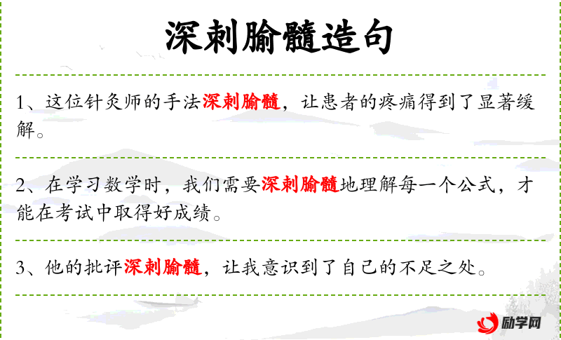 5. 【深刺腧髓】 穿穴入骨。形容深透理解。腧,穴位。
