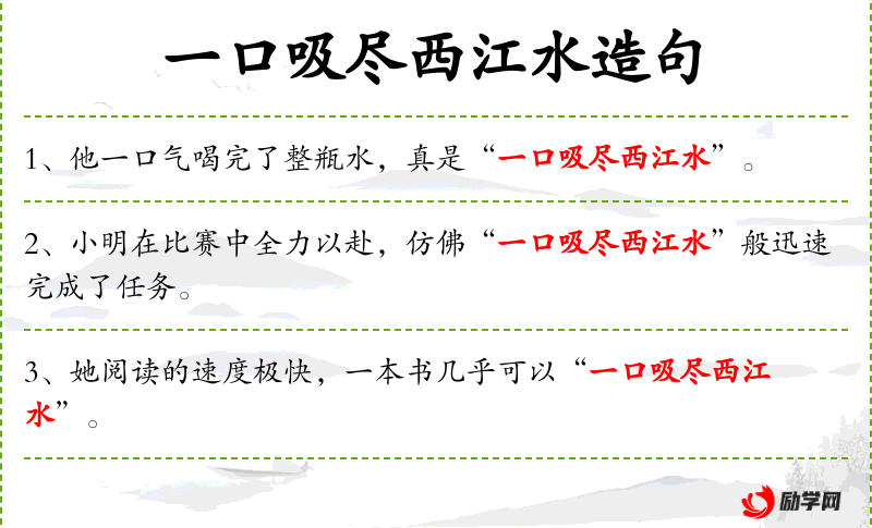 他一口气喝完了整瓶水,真是“一口吸尽西江水”。