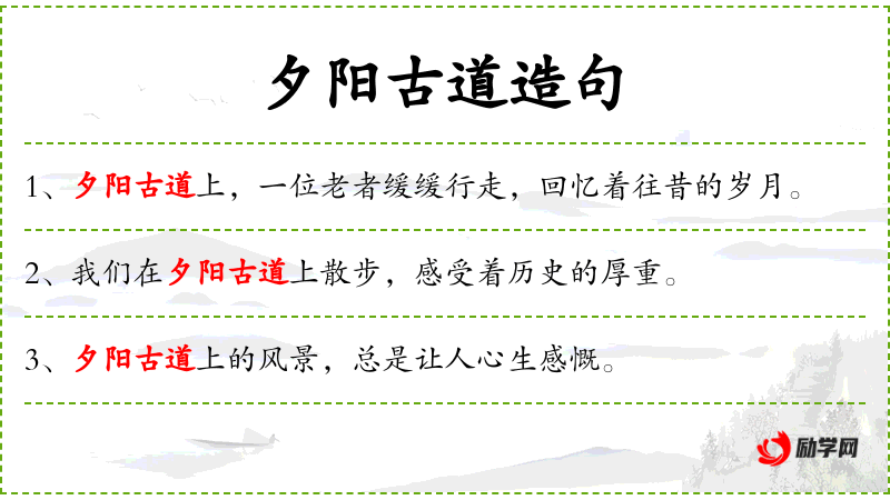 句子:“夕阳古道上的风景,总是让人心生感慨。”