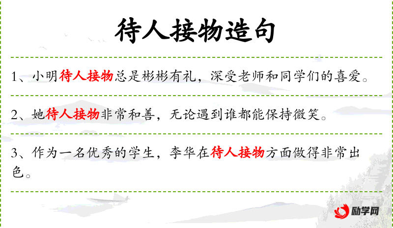 - 待人接物:指与人相处和处理事务的方式。