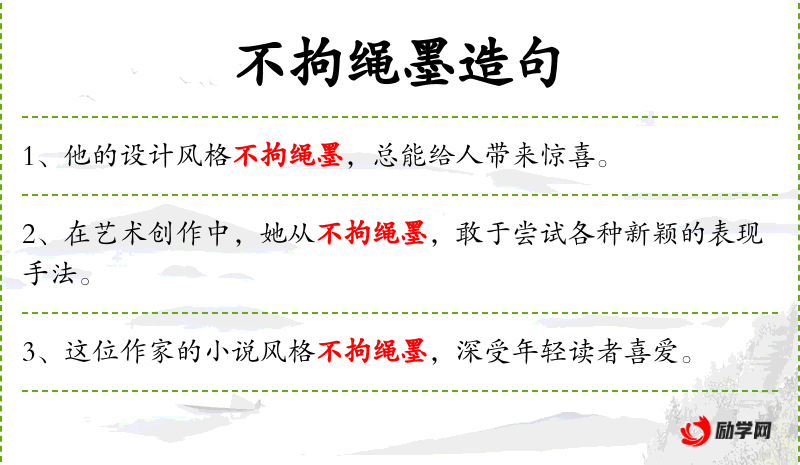 - 不拘绳墨:源自**传统文化,意指不受传统束缚,自由创新。