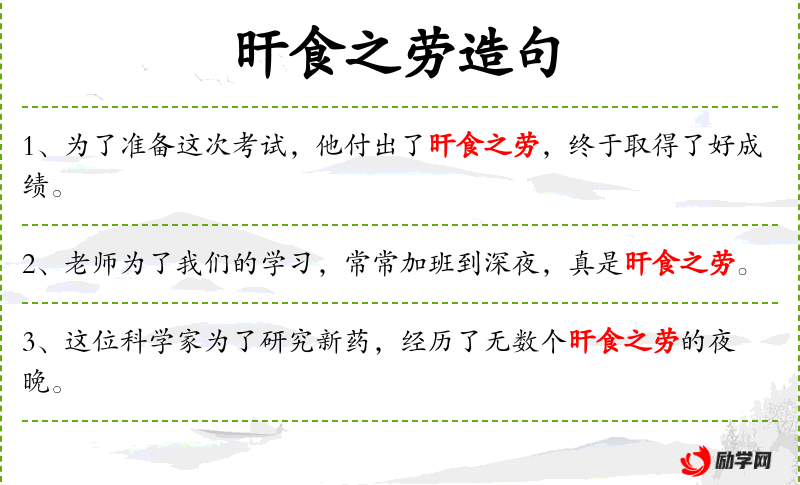- 旰食之劳:这个成语源自**古代,反映了传统文化中对辛勤工作的赞美。