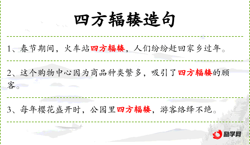 - 状语:四方辐辏