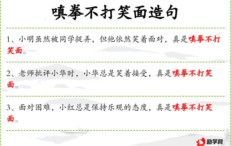 - 嗔拳不打笑面:这个成语源自**传统文化,强调了在冲突和挑战面前保持乐观和友好的态度。