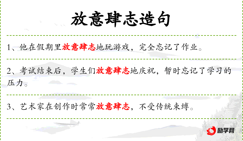 - 放意肆志地:形容词短语,表示自由自在、不受拘束地