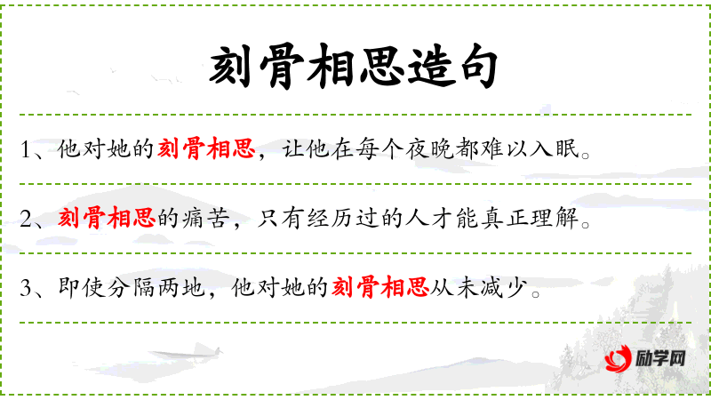 1. 【刻骨相思】 形容思念之深,历久难移。