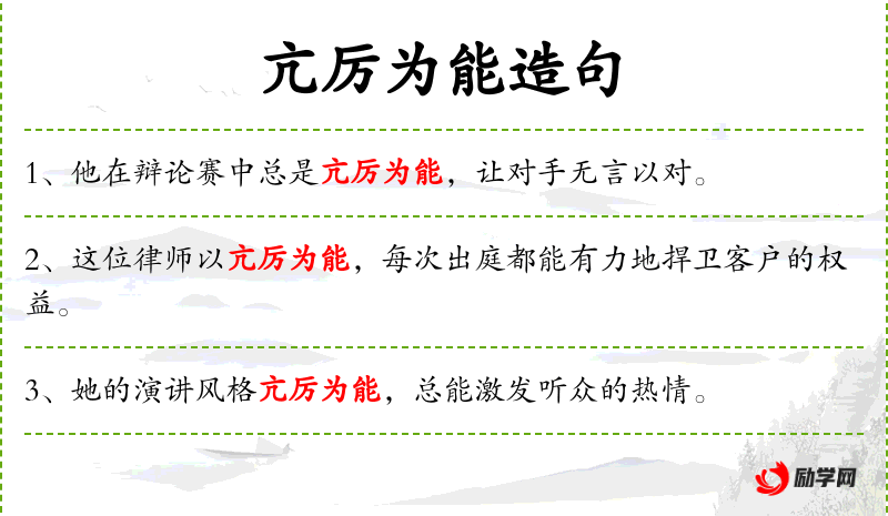 句子:“[她的谈判技巧亢厉为能,总能争取到最好的条件。]”