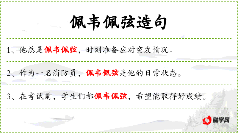 句子:“在备战高考的日子里,学生们都佩韦佩弦,不敢有丝毫懈怠。”