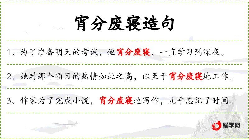 - 宵分废寝:形容非常勤奋,连睡觉都顾不上。