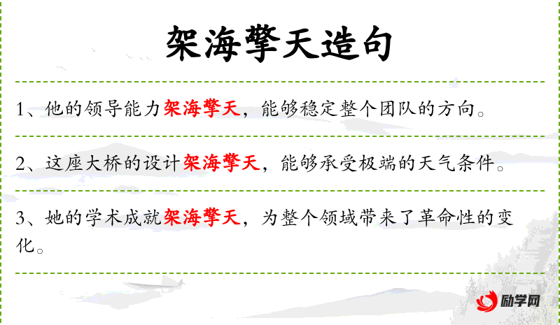 架海:横跨大海;擎天:支撑上天。形容本领大,能力非凡。