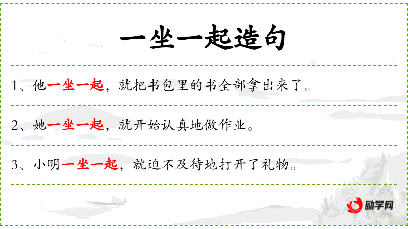 1. 【一坐一起】 - 犹言一举一动。指人的每一个动作。