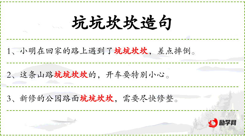 - 宾语:坑坑坎坎的地形