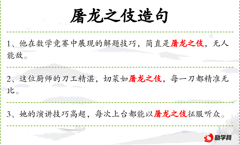 - 文化背景:“屠龙之伎”源自欧洲中世纪的骑士传说,比喻高超的技艺。