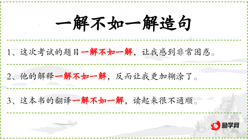 - 一解不如一解:表示每一种解释都没有前一种解释好,反而更糟糕。