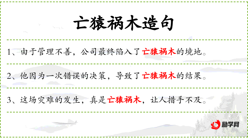 “亡猿祸木”是一个成语,源自《战国策·齐策二》:“亡猿祸木,非木之罪也,猿之罪也。”比喻因小失大,或因一时的错误导致严重的后果。这个成语反映了人对于决策后果的重视和谨慎态度。