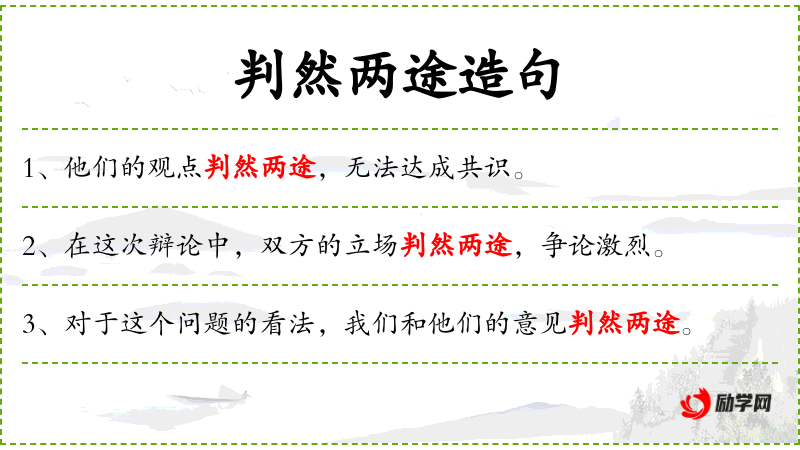 - 成语:“判然两途”是一个常用的成语,用于描述意见的极端分歧。