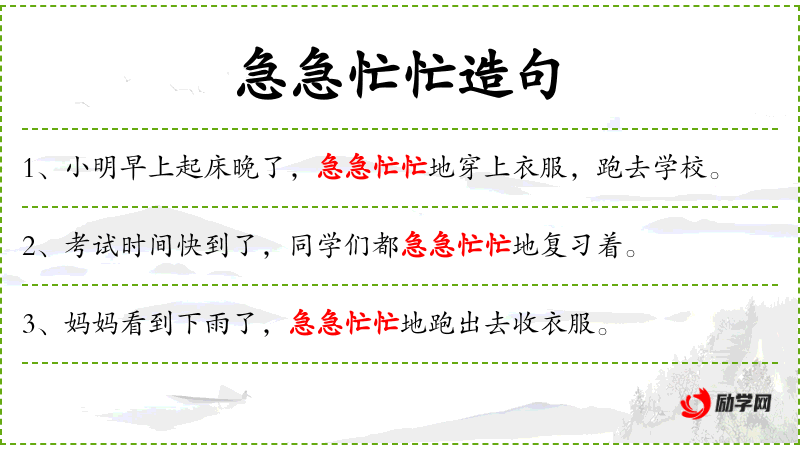 - 急急忙忙:形容动作匆忙,没有充分准备。