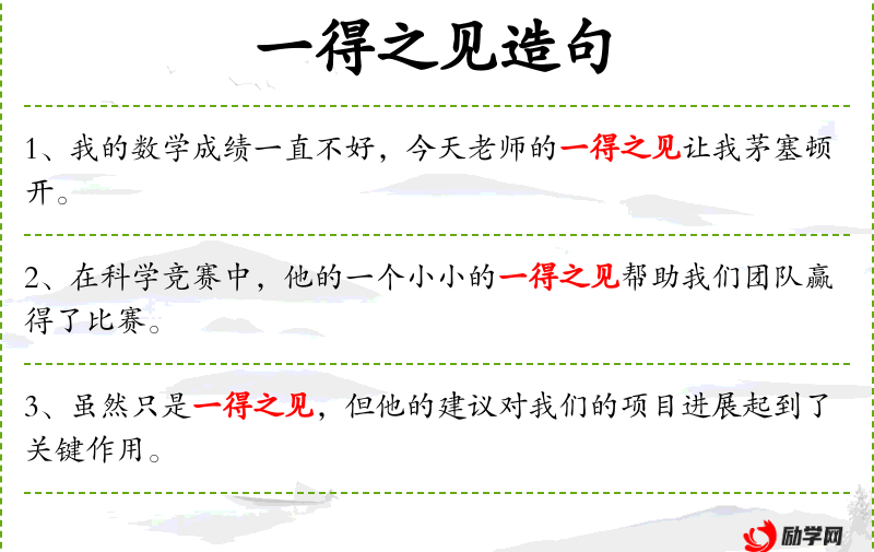 1. 【一得之见】 见:见解。谦虚的说法,指自己对某个问题的见解。