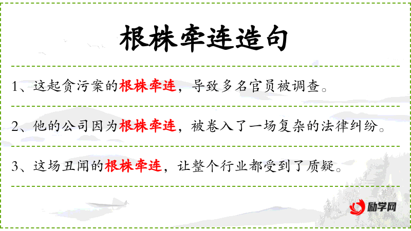 4. 【根株牵连】 指一方有祸,另一方如同根与株一般不可避免地受到牵累。