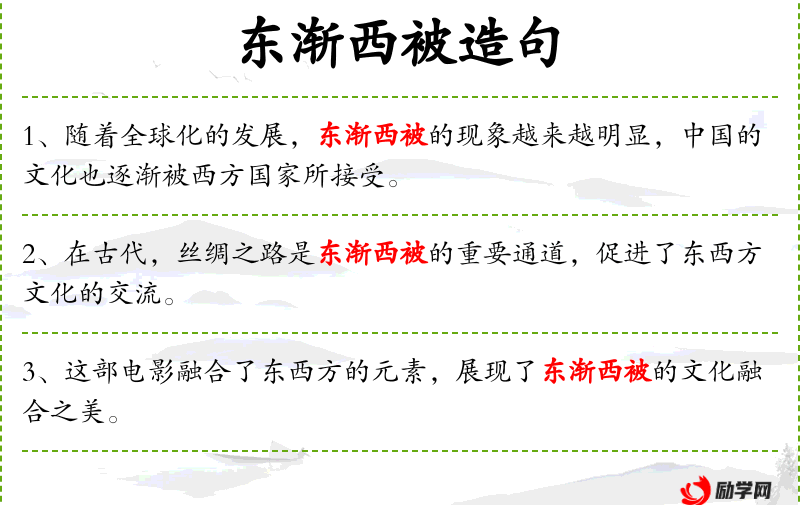 - “随着国际合作的不断深化,环境保护领域中的东渐西被现象愈发显著,各国正携手应对气候变化。”