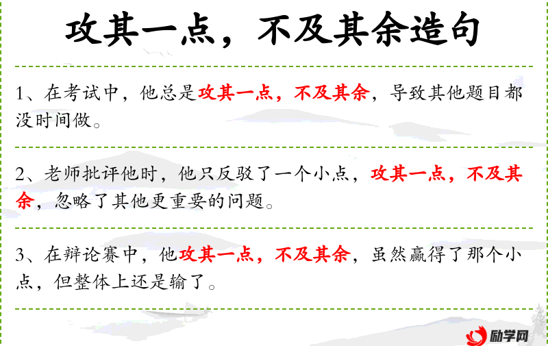 - 谓语:攻其一点,不及其余,导致