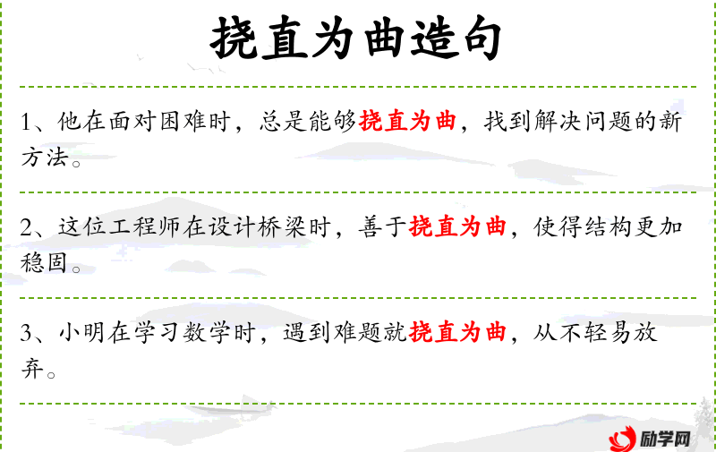 - 挠直为曲:这个成语体现了中文中的一种修辞手法,即通过改变事物的常态来创造新意。