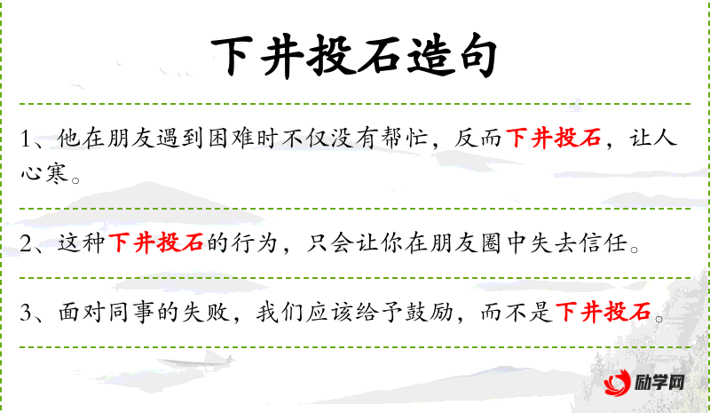 1. 【下井投石】 - 见人掉进井里,不但不搭救,反而向井里仍石头。
