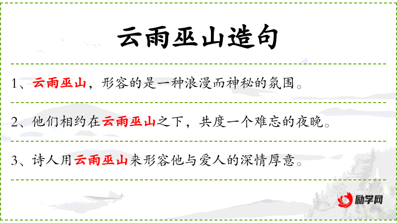 - 云雨巫山:可能与**古代文学中的“巫山云雨”有关,这是一个源自《楚辞》的典故,描述了巫山神女的美丽与神秘。