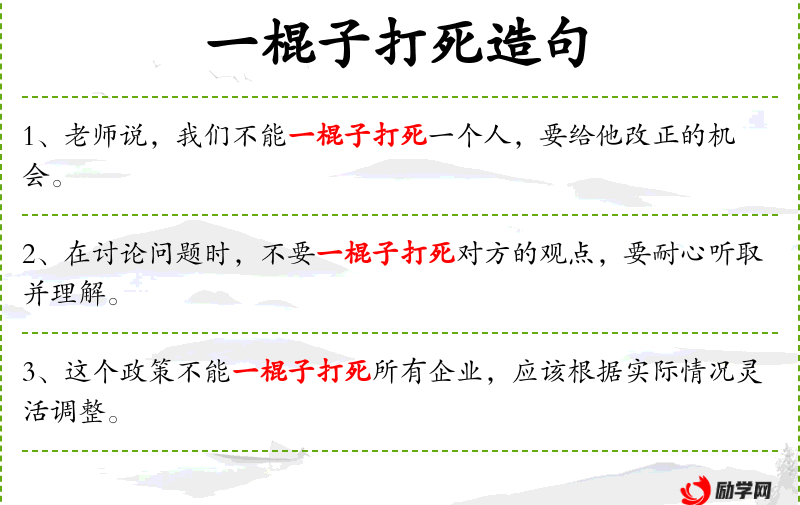 1. 【一棍子打死】 比喻认为没有丝毫可取之处而全盘否定。
