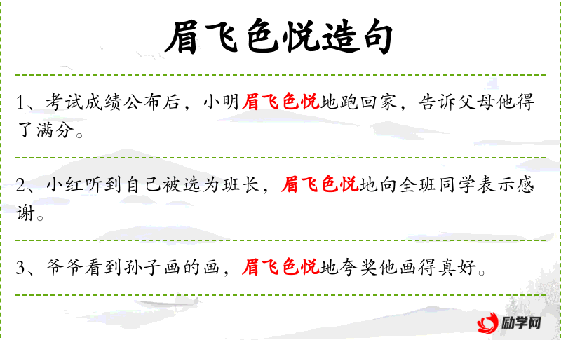 1. 【眉飞色悦】 - 形容人非常得意兴奋的样子。